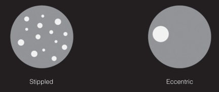 > Difuso, central e laminado: comum em granulomas